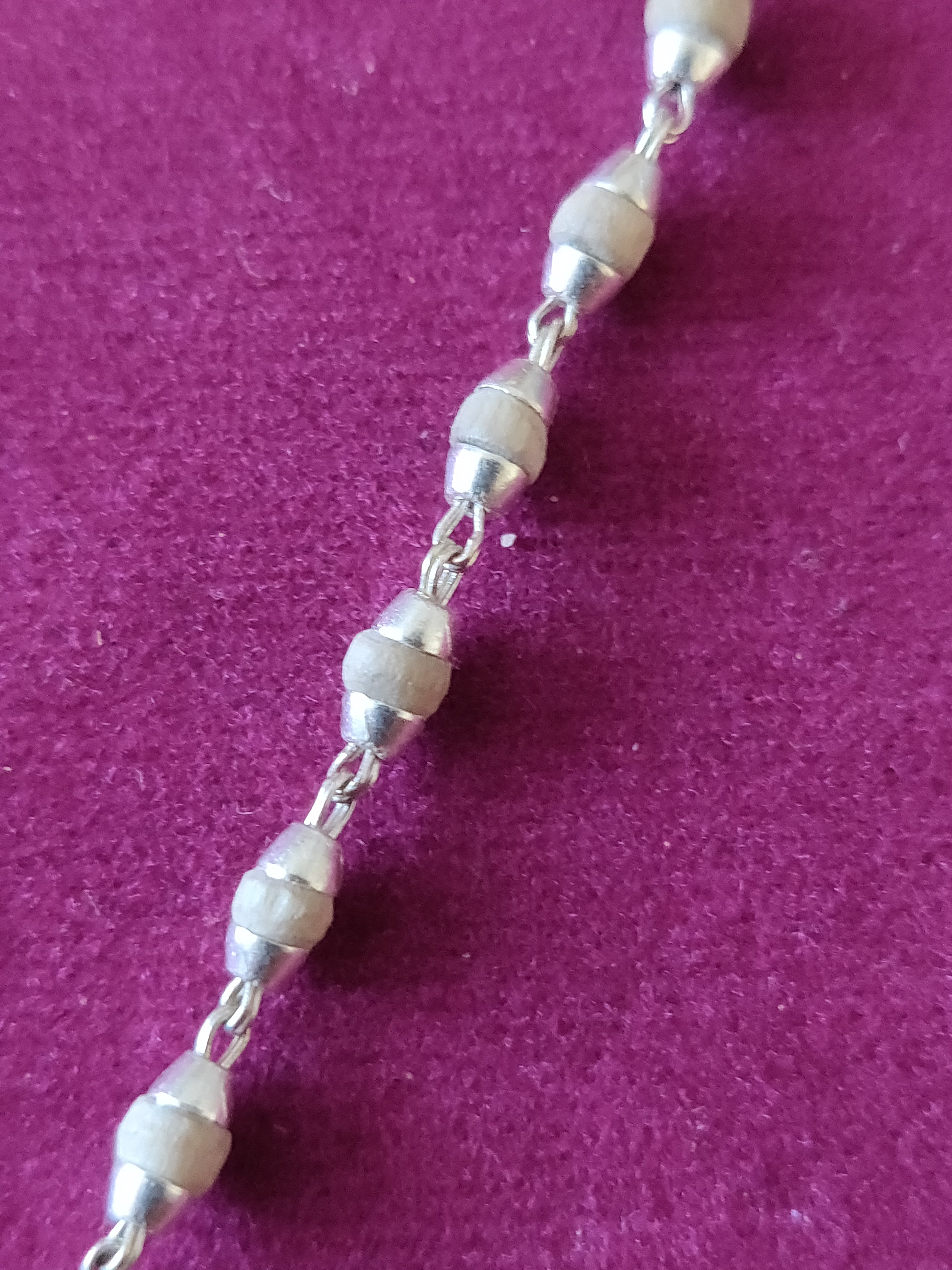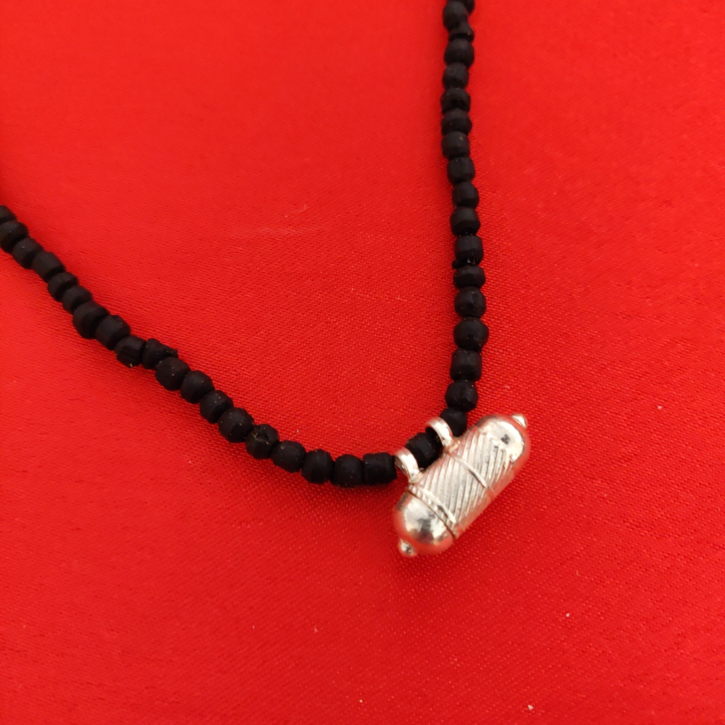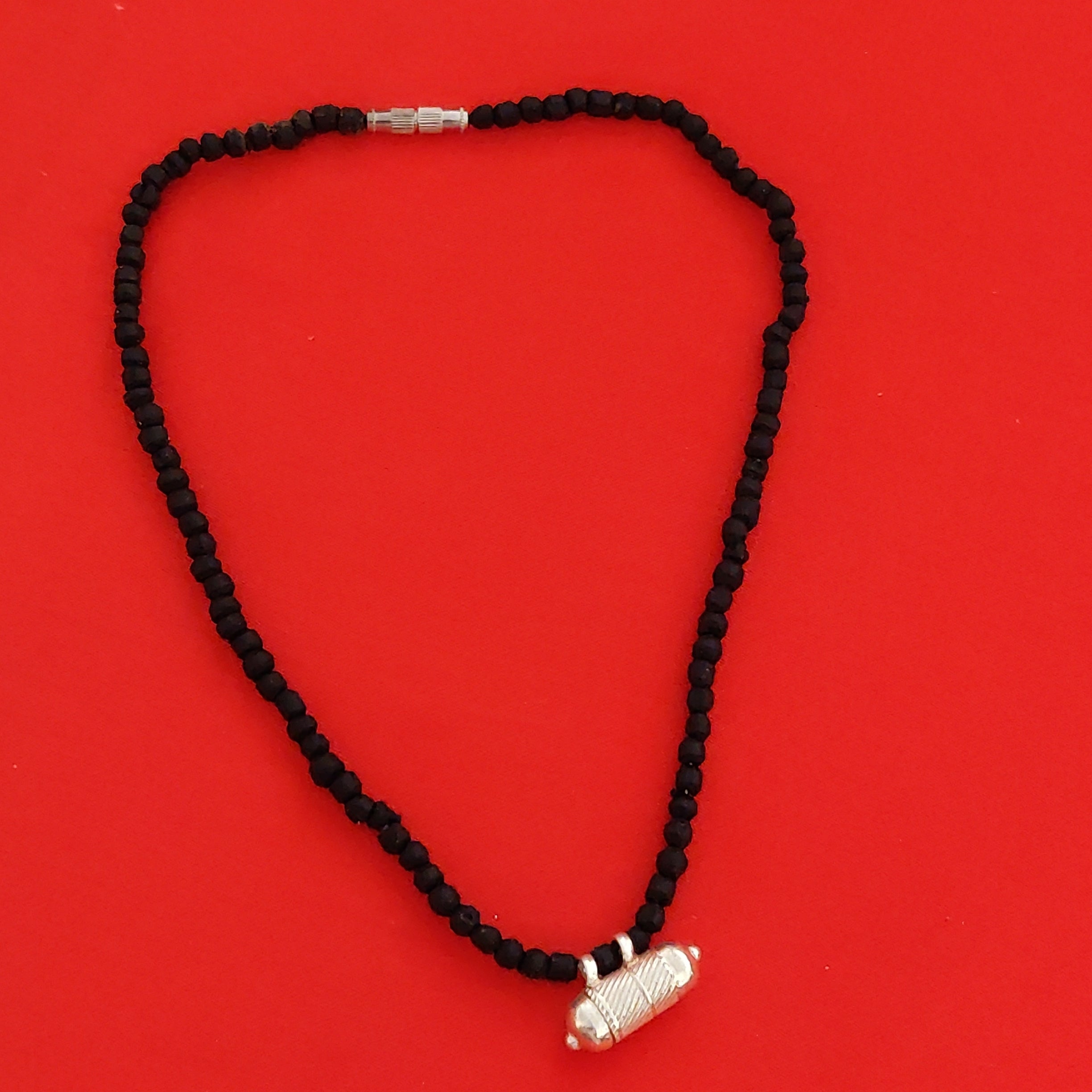 Pure Silver Tulasi Neck beads(Natural/Black Tulasi beads) with a Narshima kavach filled with Tulasi leaves, Vrindavan dust and Narshima yantra.  Size Approx :- 14" Full Length