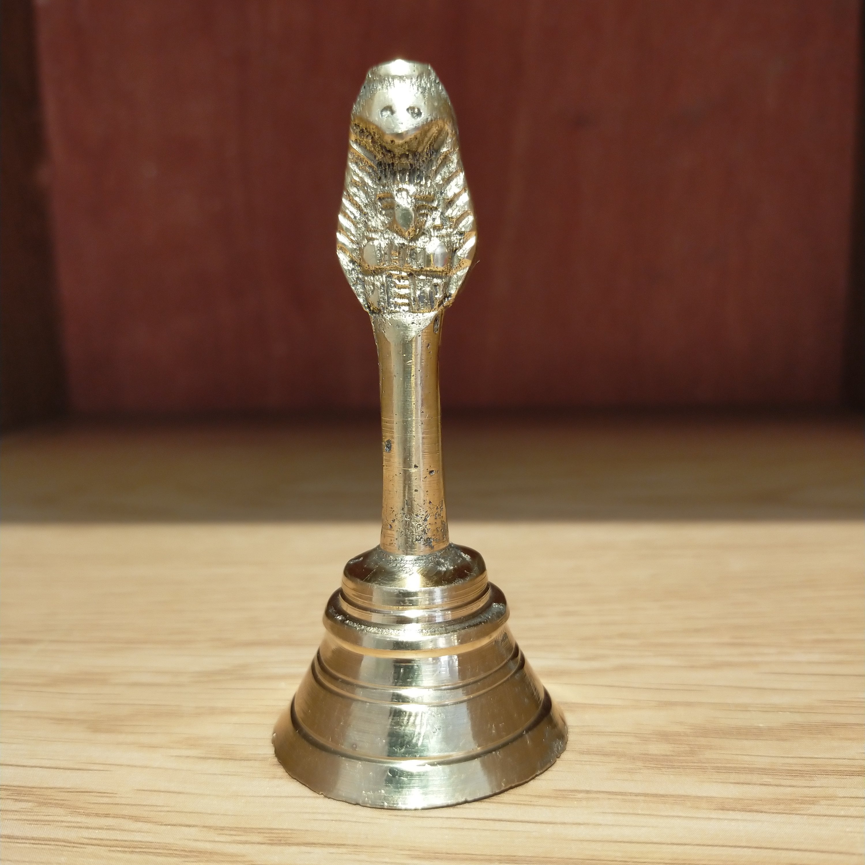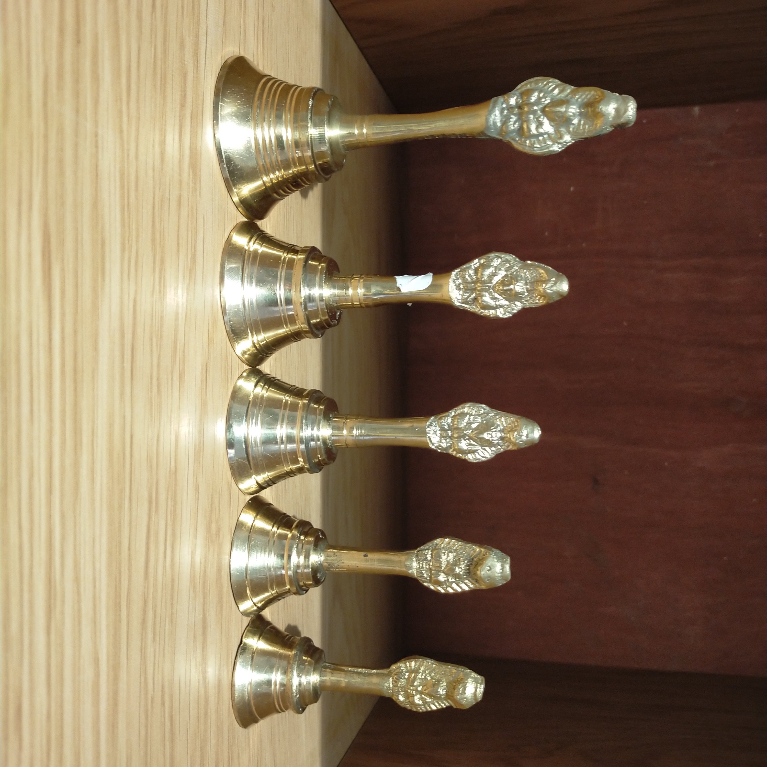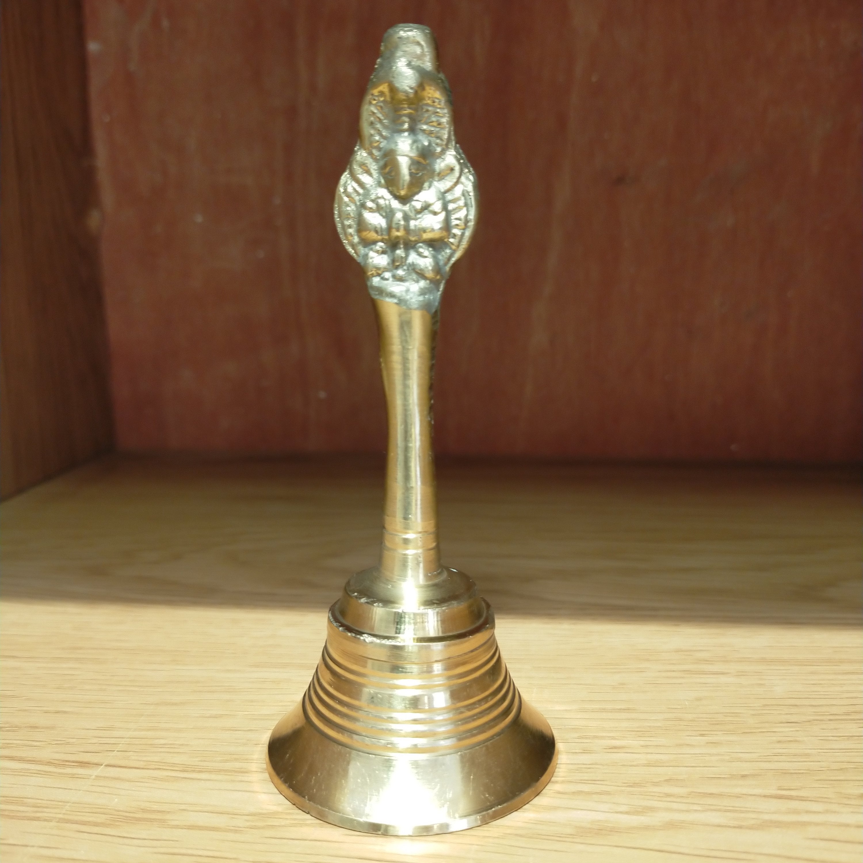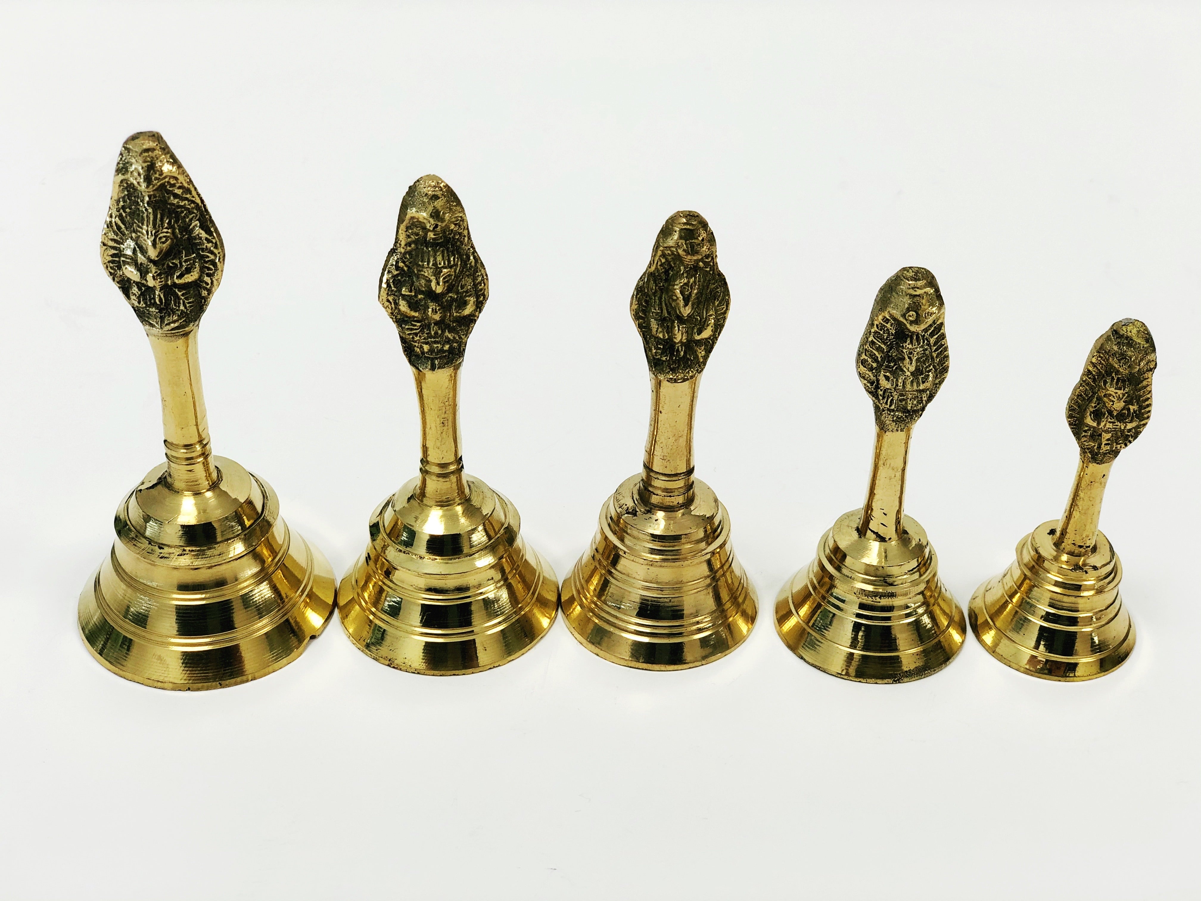 Hand held bells are held in left hand and rung continuously while the various other Puja items are offered to the Lord with right hand.