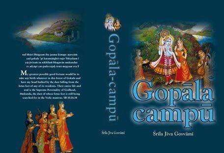 A Campu is a literary composition mixing poetry and prose, displaying literary ornaments and various verse forms, often using words with double meaning. Srila Jiva Gosvami has written Gopala-campu describing the pastimes of Krsna from his appearance until his return to Vraja. Though Kavikarnapura has written Ananda-vrndavana Campu on the same topic, the unique feature of this campu is that the whole story has been arranged to lead to Krsna’s final union in marriage to the gopis.