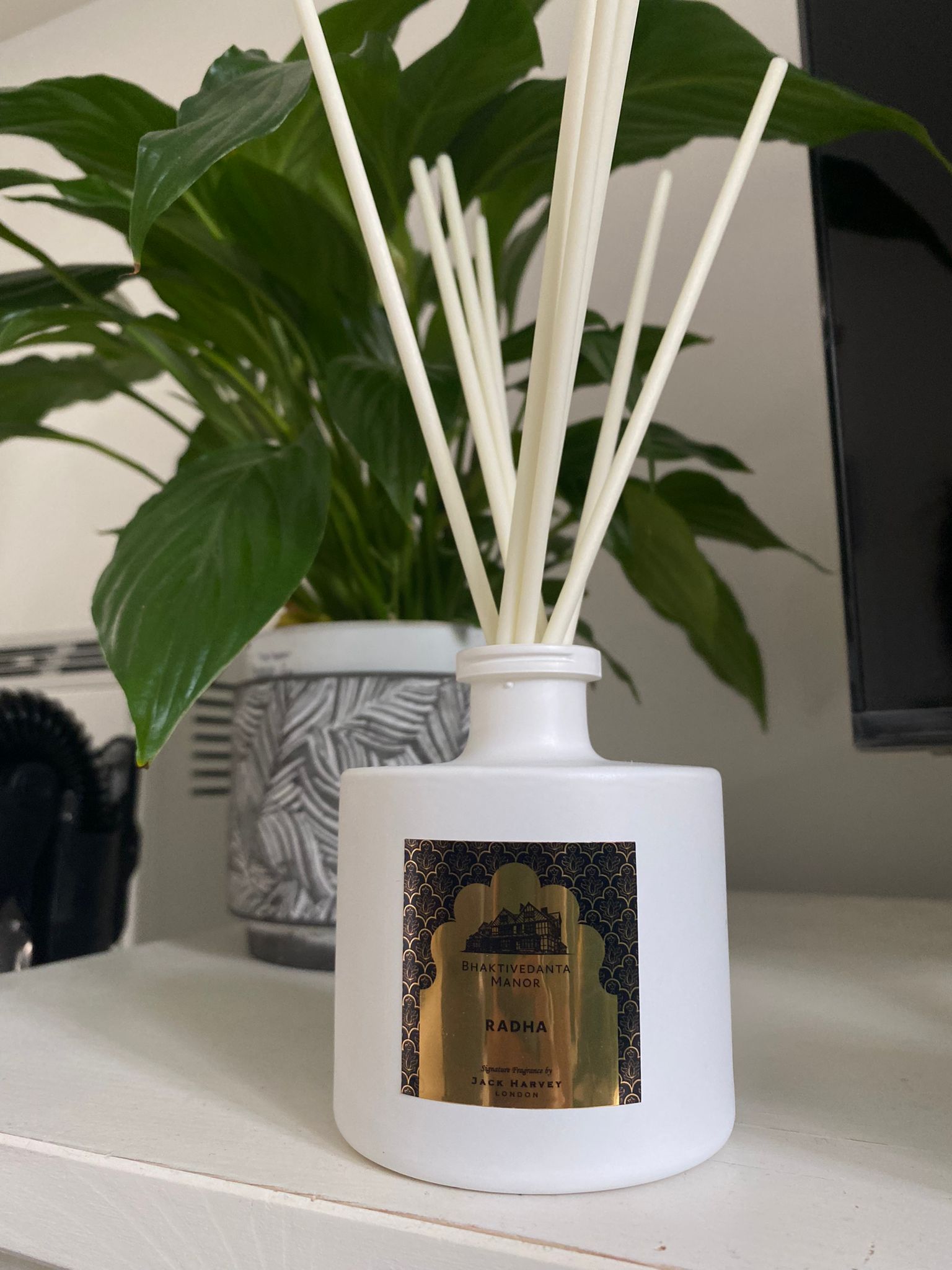 Luxury high fragrance reed diffuser. This exclusive scent was created for Bhaktivedanta Manor.