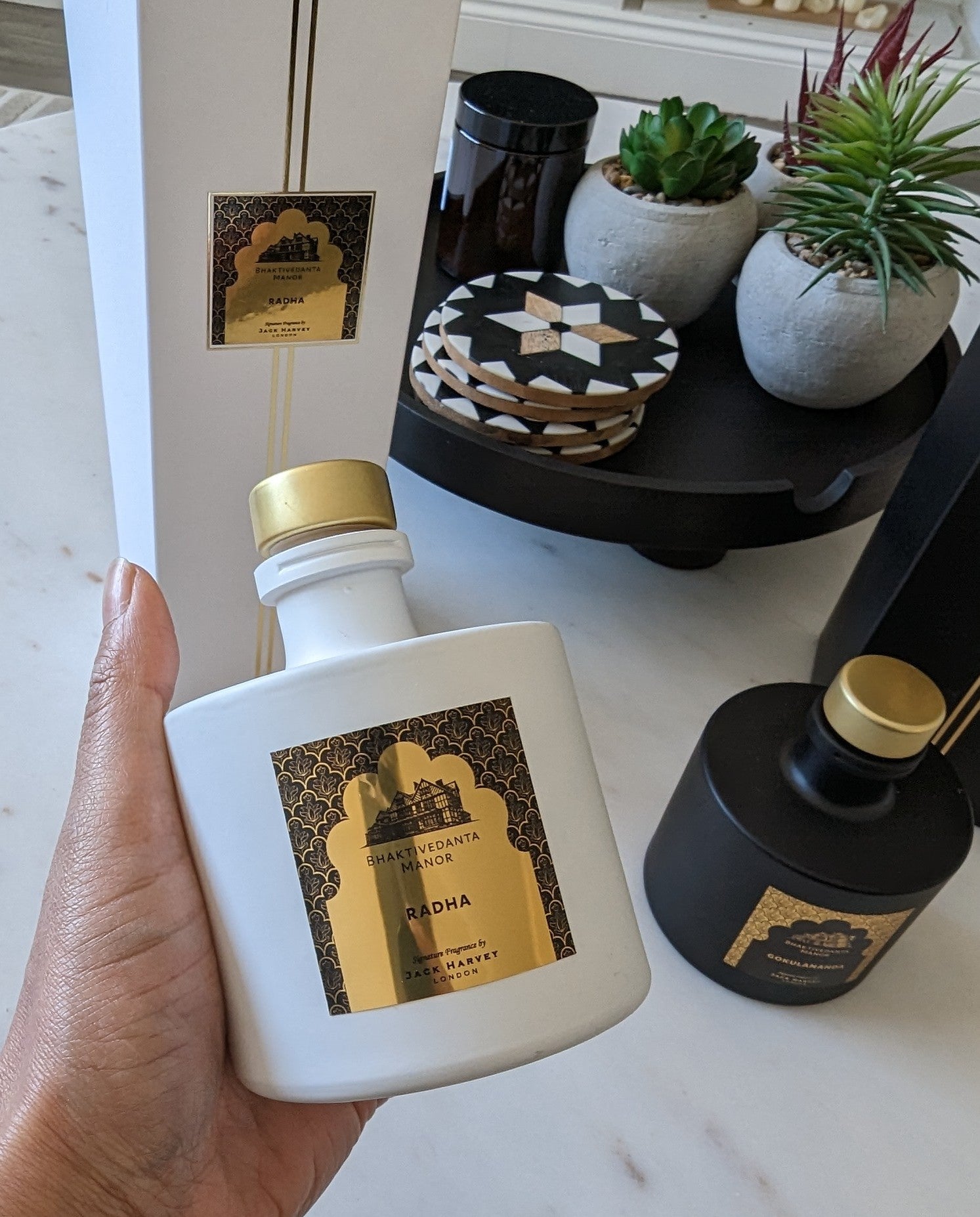The Radha (in white) and Gokulananda (in black) 200ml diffuser and candles are made of the purest Ingredients. The perfect scent to take home or gift to friends, family or colleagues.