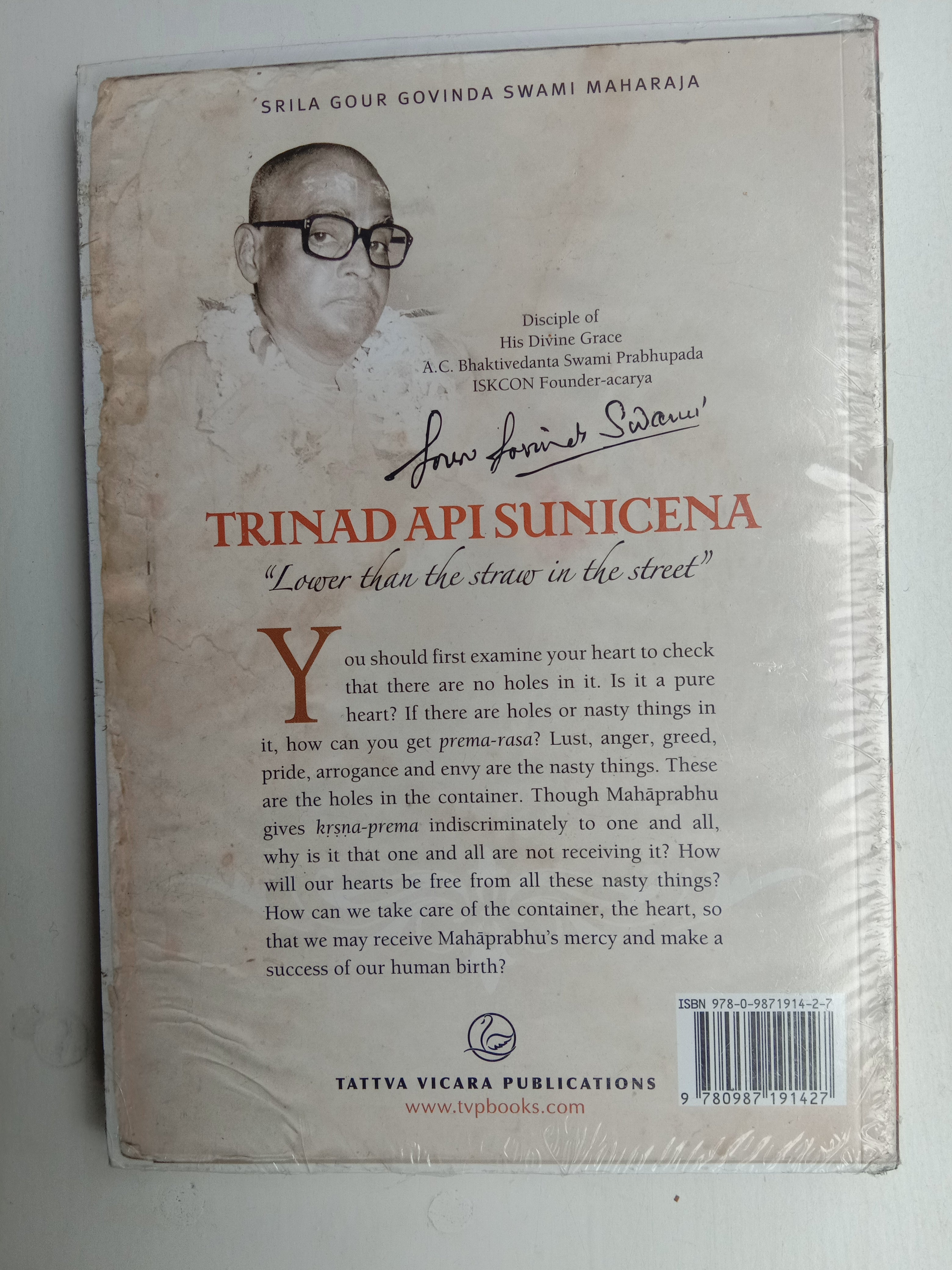 heart? If there are holes or nasty things in it, how can you get prema-rasa? Lust, anger, greed, pride, arrogance and envy are the nasty things. These are the holes in the container. Though Mahaprabhu gives kṛṣṇa-prema indiscriminately to one and all, why is it that one and all are not receiving it? How will our hearts be free from all these nasty things? How can we take care of the container, the heart, so that we may receive Mahaprabhu's mercy and make a success of our human birth?