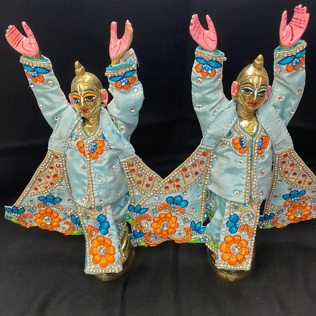 Slightly Painted Brass Deities of Lord Caitanya Mahaprabhu and Nityananda Prabhu.