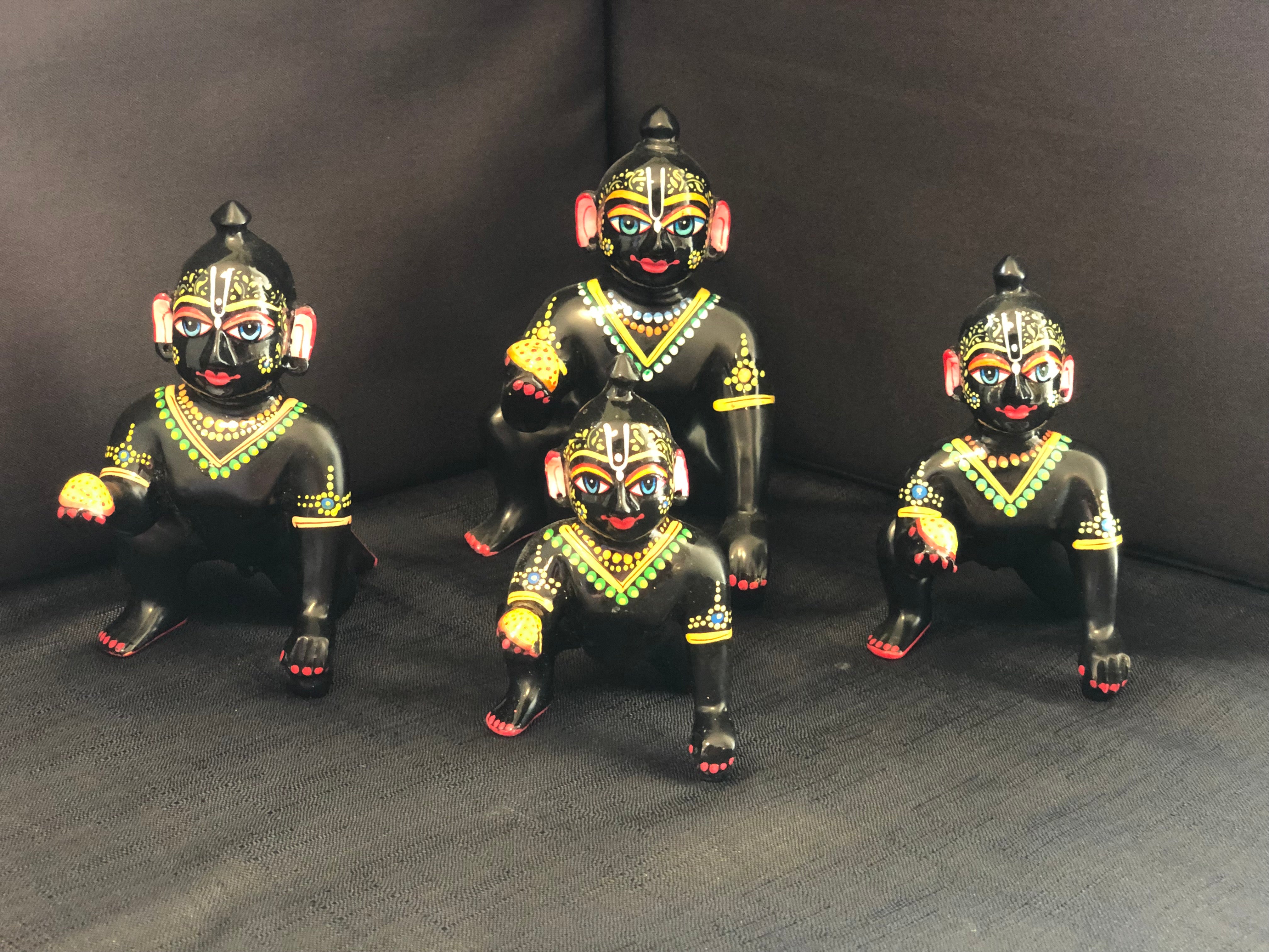 Black Brass Laddu Gopal Deity comes in 7 sizes (width x height):