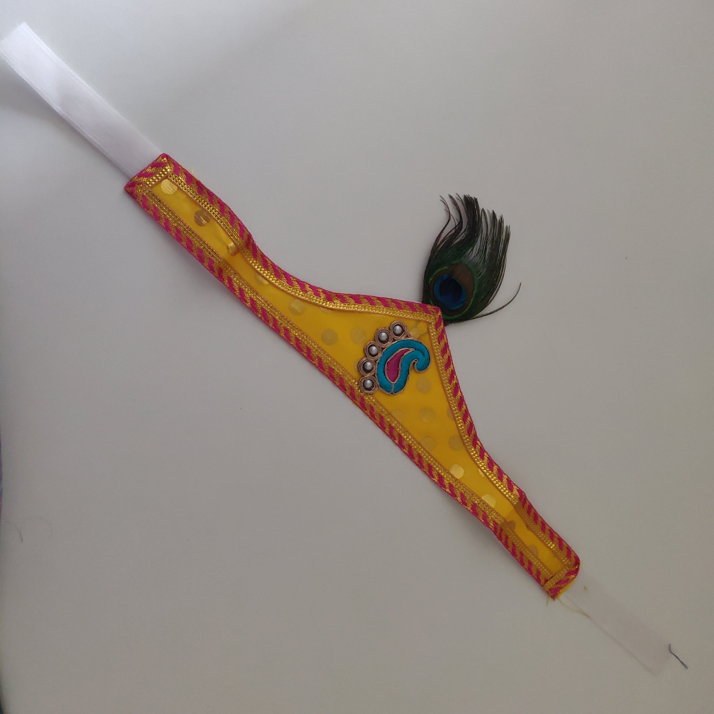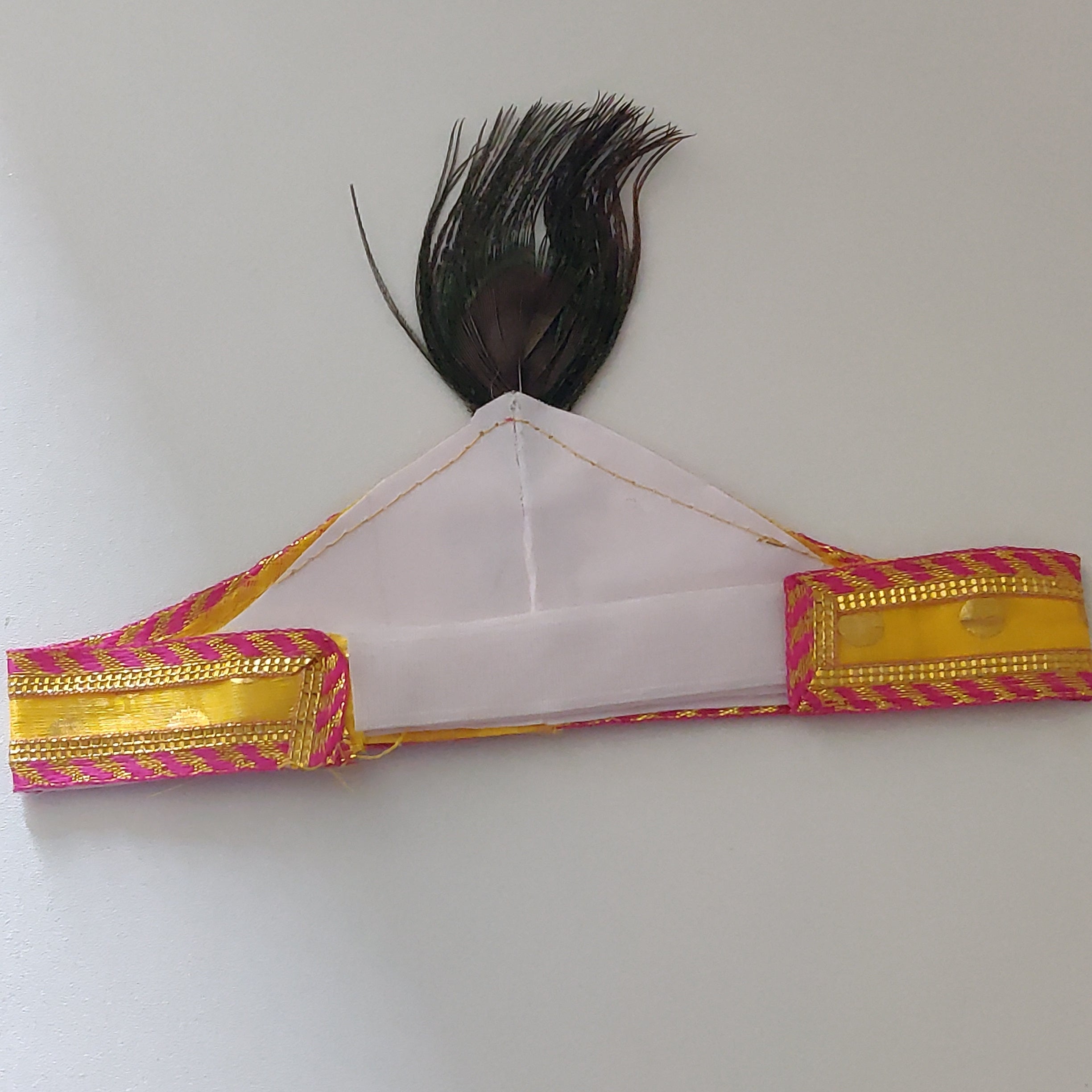 crown made with the cloth with the lining at the backing with the peacock attached and has got velcro adjustment for the head size is seen on a picture. approx size:...