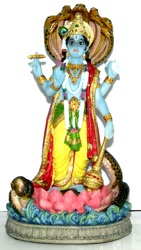 A beautiful hand painted poly resin figure of Lord Vishnu.